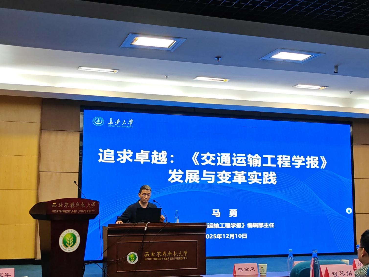 为认真贯彻落实习近平文化思想和习近平总书记关于办好一流学术期刊重要指示精神,回顾总结中国科技期刊卓越行动计划二期项目陕西入选期刊阶段性工作成效,挖掘推广先进办刊经验和创新探索,研讨和交流科技期刊发展新形势、新任务,探索办刊新理念和新举措,以高质量的科技期刊服务陕西经济社会高质量发展,2025年12月10日,第六届中国科技期刊卓越行动计划陕西省入选期刊研讨会在陕西杨凌西北农林科技大学召开。会议由陕西省科学技术协会指导,长安大学学术期刊管理中心主办,《交通运输工程学报(英文版)》《交通运输工程学报》《中国公路学报》编辑部承办。